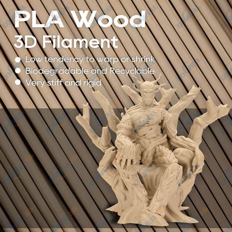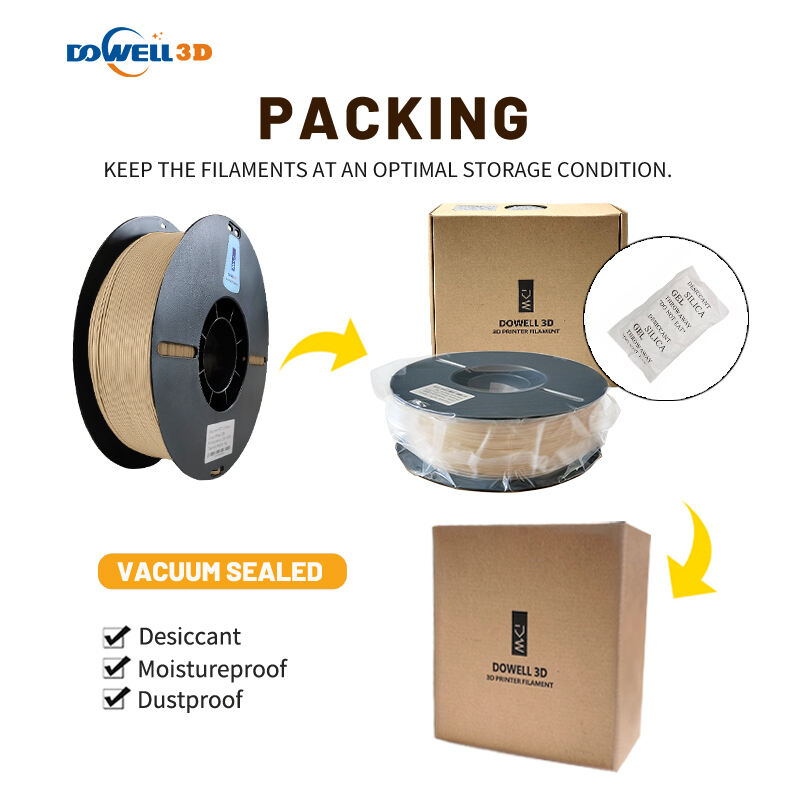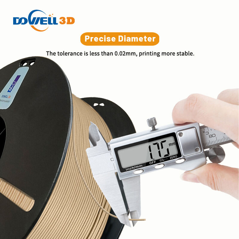 Le filament imprimante Dowell en PLA bois est fabriqué à partir de fibres de bois brutes mélangées à du PLA brut importé pour créer un effet naturel de couleur bois