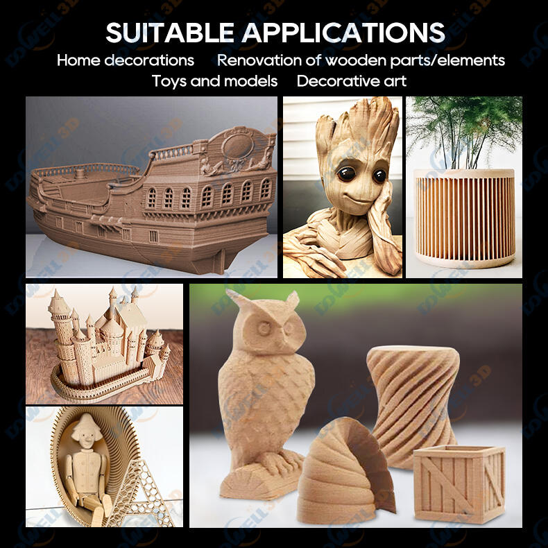 Le filament DOWELL 3D est idéal pour les passionnés et professionnels de l'impression 3D souhaitant intégrer une esthétique naturelle, semblable au bois, dans