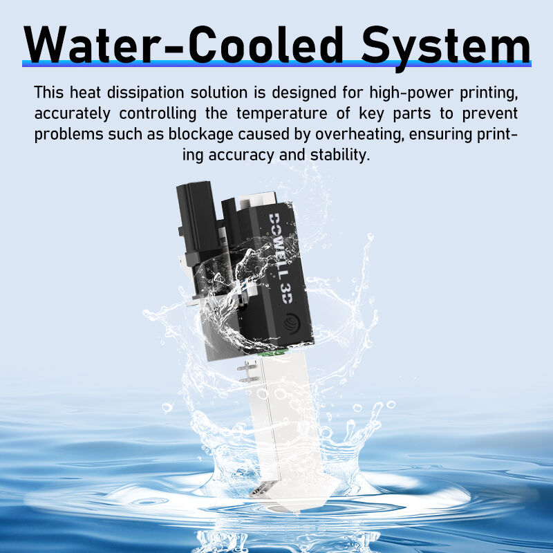 უზრუნველყოფს უფრო გლუვ გამოტანას. წყლის გაგრილების სისტემა საშუალებას აძლევს მოდელის მაღალი სიჩქარისა და ზუსტად დაბეჭდვას.
